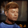 Description: mccoy from star trek closing his eyes and giving a firm nod